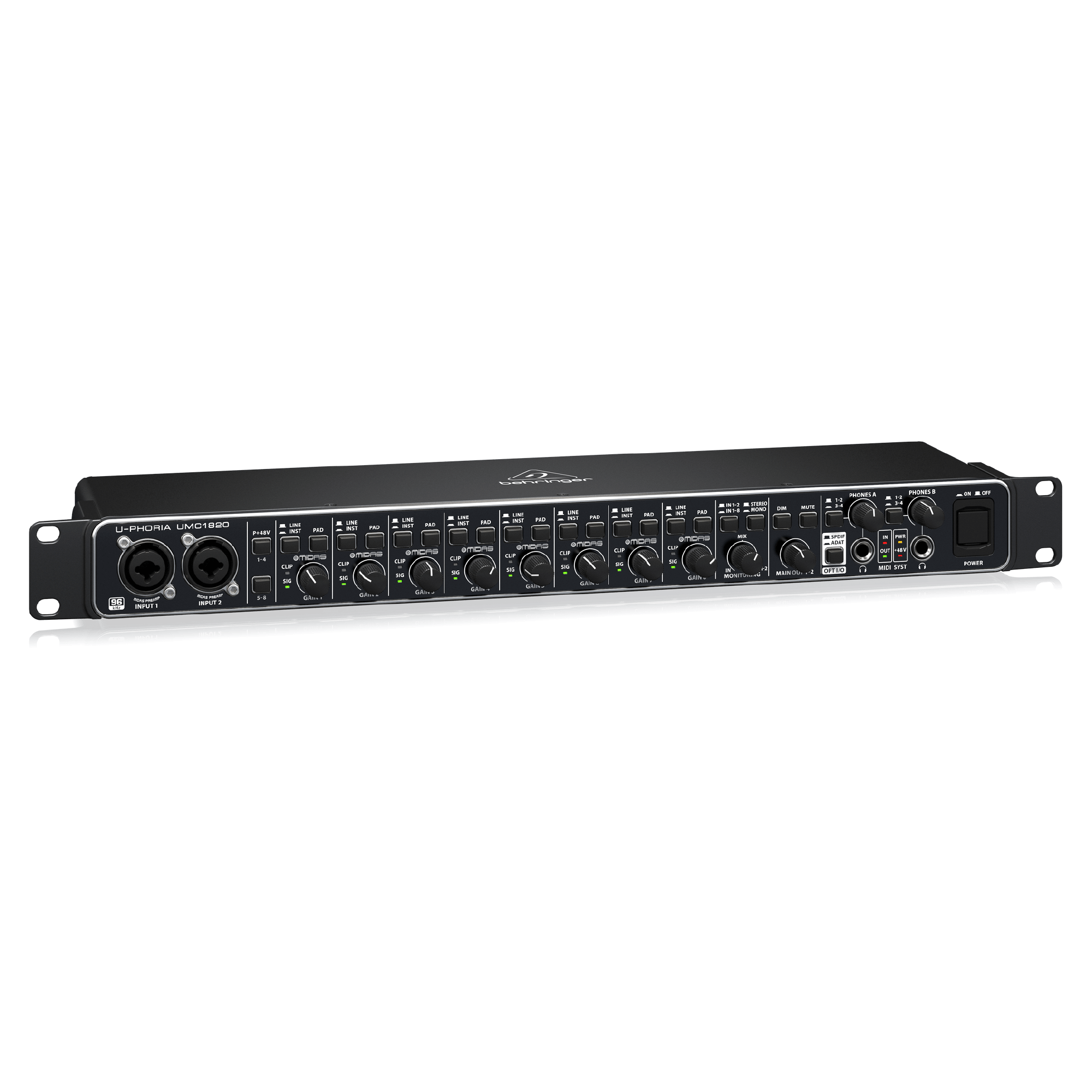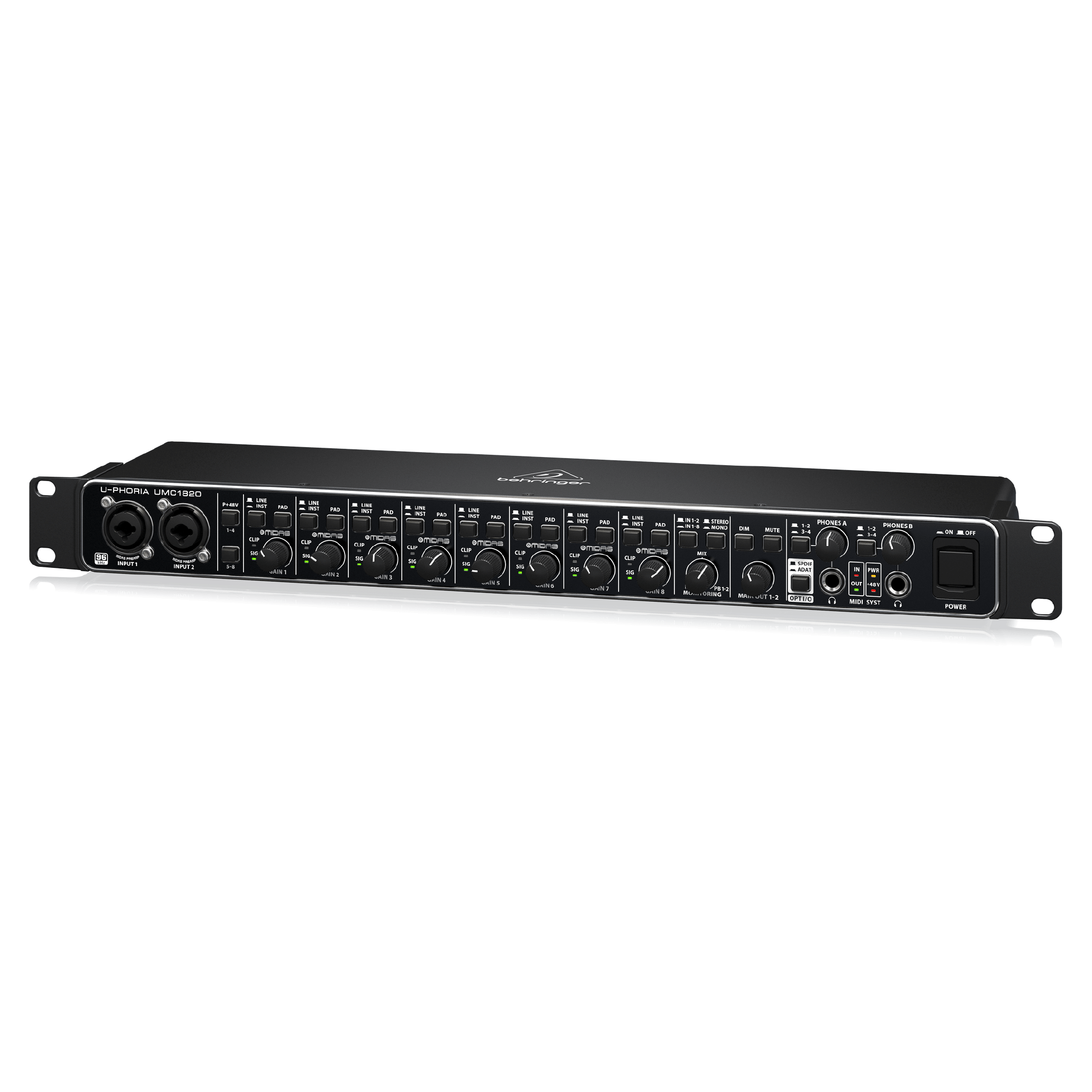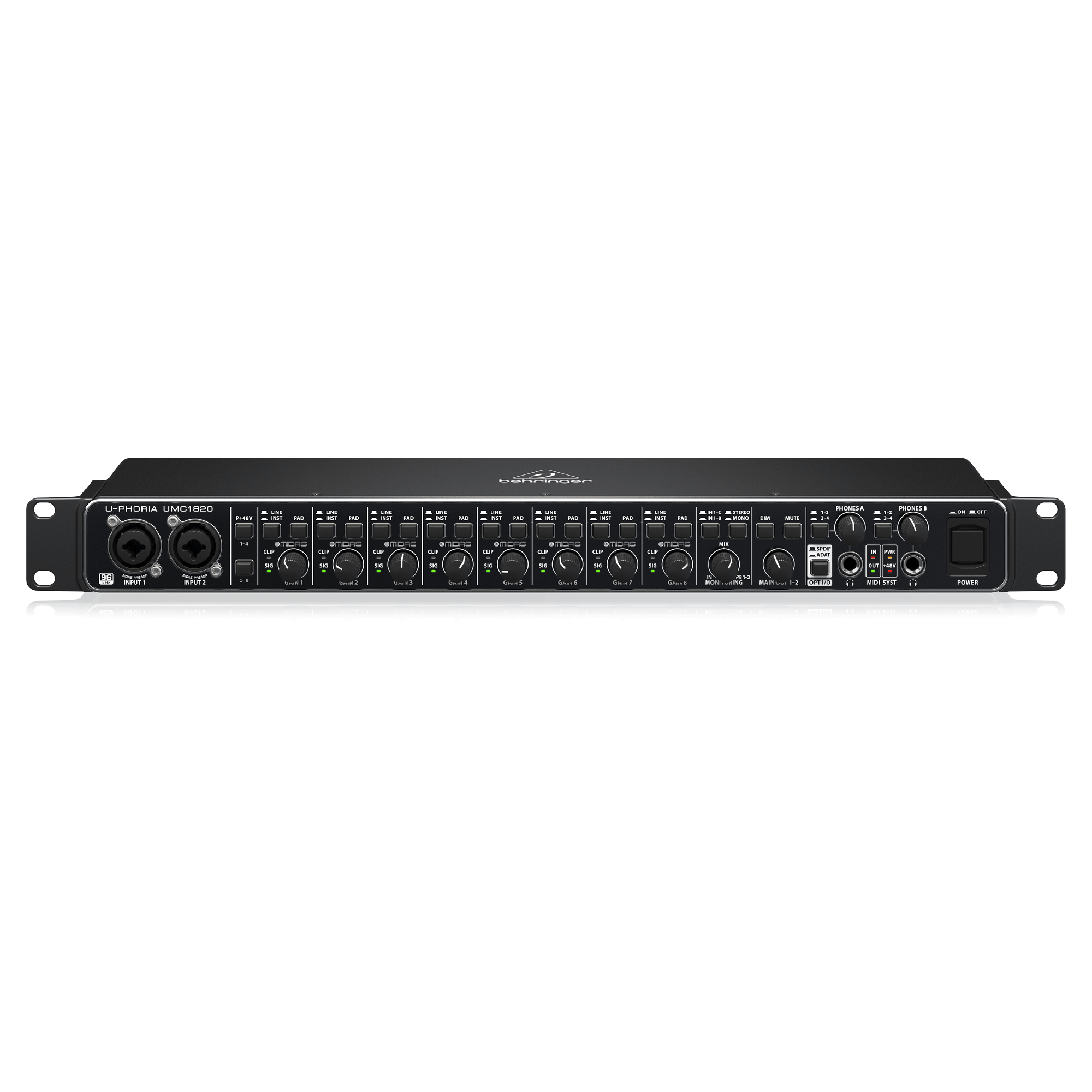 ライブ/スタジオのどちらの環境でも最高品質のオーディオ再生を実現するため、UMC1820にMIDAS設計のマイクプリアンプを採用しました
